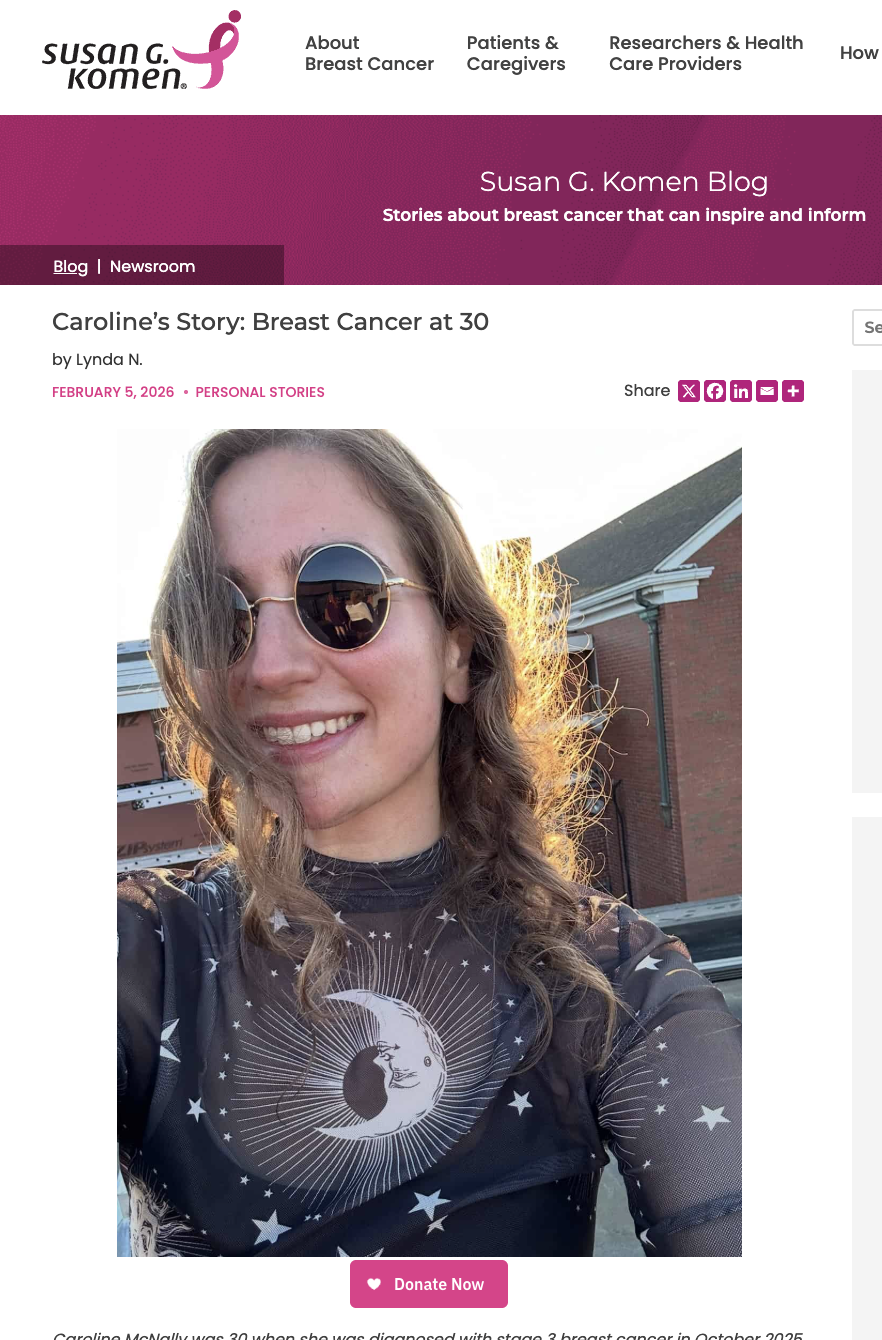 Featured on Susan G. Komen 〰️ Writer, Speaker, Advocate, Dreamer 〰️